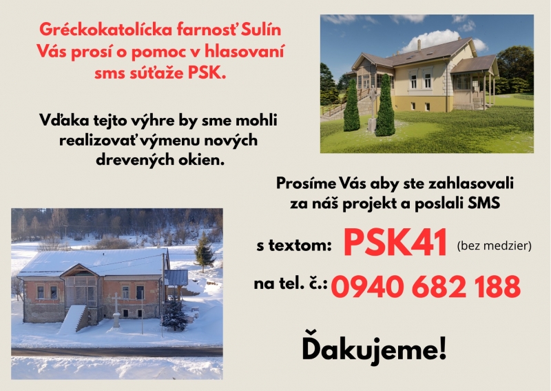 Prosba za zahlasovanie projektu na výmenu okien formou SMS hlasovania.